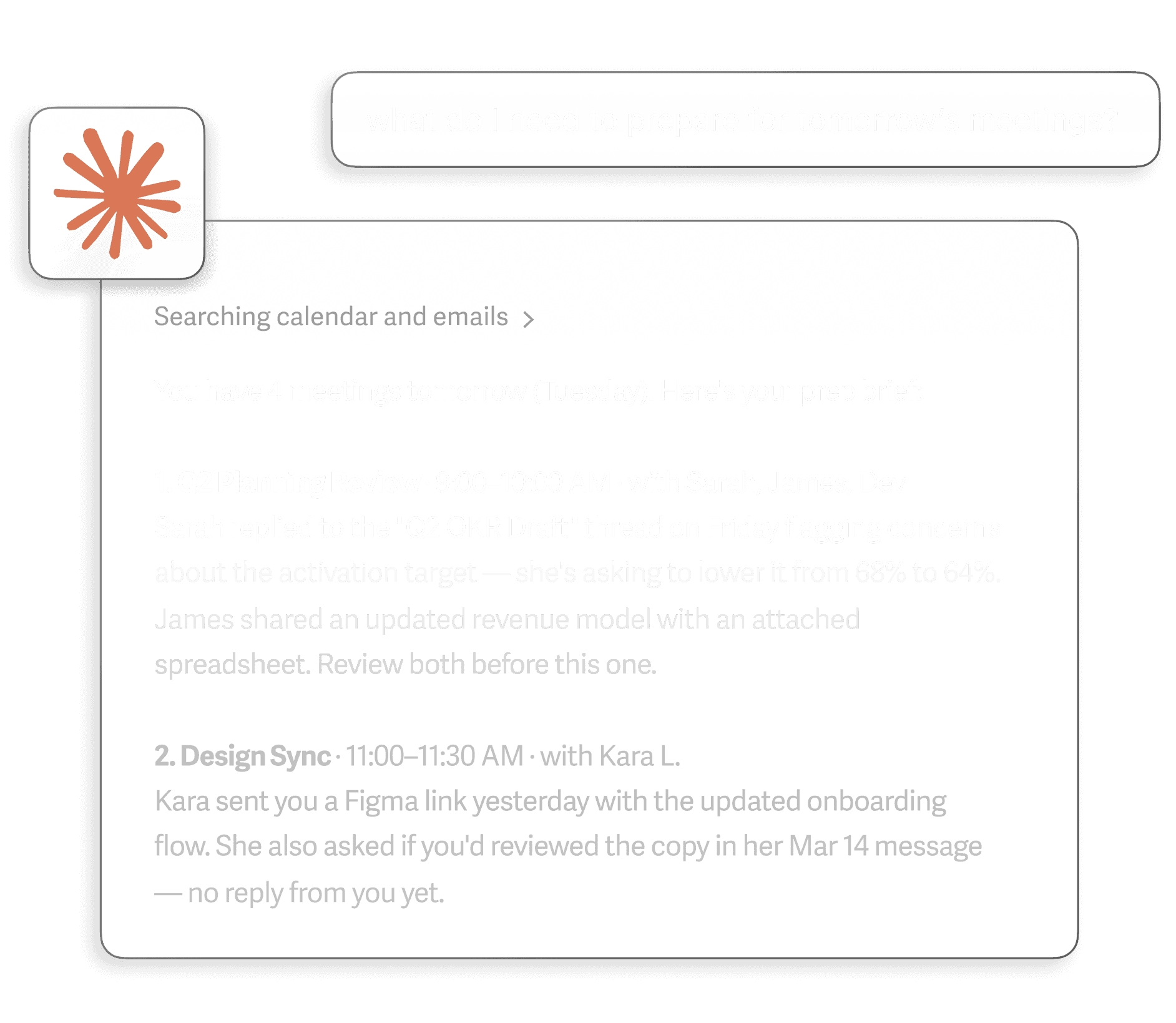 Come to every meeting prepared and at your best. Get relevant context and pre-reads organized in one place for you ahead of time.